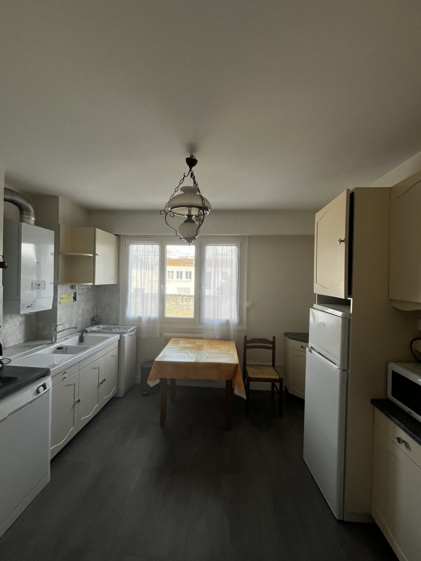 La Rochelle quartier de la Genette : votre agence, le Cabinet Demougin, vous propose un spacieux T3 traversant (anciennement T4) loué en meublé et disponible immédiatement, idéalement situé au cœur du quartier de la Genette, d’une surface d’environ 90 m2, au deuxième étage d’une résidence. Il comprend une entrée, un dégagement, un salon séjour, une cuisine équipée, 2 chambres, une salle de bains, un WC, un cellier, un balcon filant. Loyer 900 €/mois + provisions sur charges 85 €/mois (entretien résidence + eau) avec régularisation annuelle soit un total de 985 €/mois.
